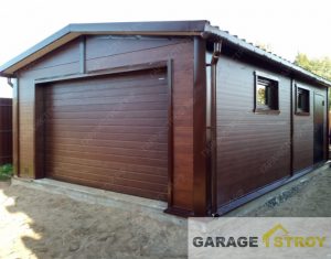 Гараж из сэндвич-панелей размером 5*8м на одну машину с двускатной кровлей.